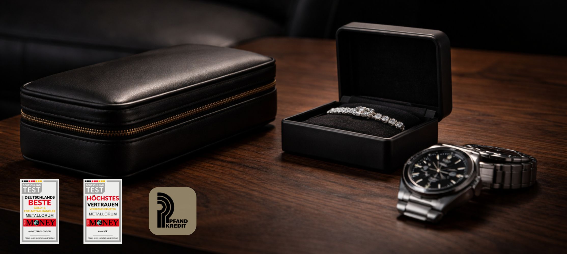 Beleihen Sie Ihre Wertgegenstände bei Metallorum und profitieren Sie von einem unkomplizierten, diskreten und professionell begleiteten Prozess. Nach fachkundiger Bewertung erhalten Sie ohne Wartezeiten sofort bares Geld für Ihr Pfand – ohne klassische Kreditprüfung und ohne unnötige Hürden. Die Laufzeit Ihres Darlehens bestimmen Sie selbst und können sie bei Bedarf flexibel verlängern. Als zertifizierte Pfandleihstelle steht Metallorum für verlässliche Abläufe, transparente Konditionen und ein Höchstmaß an Sicherheit.